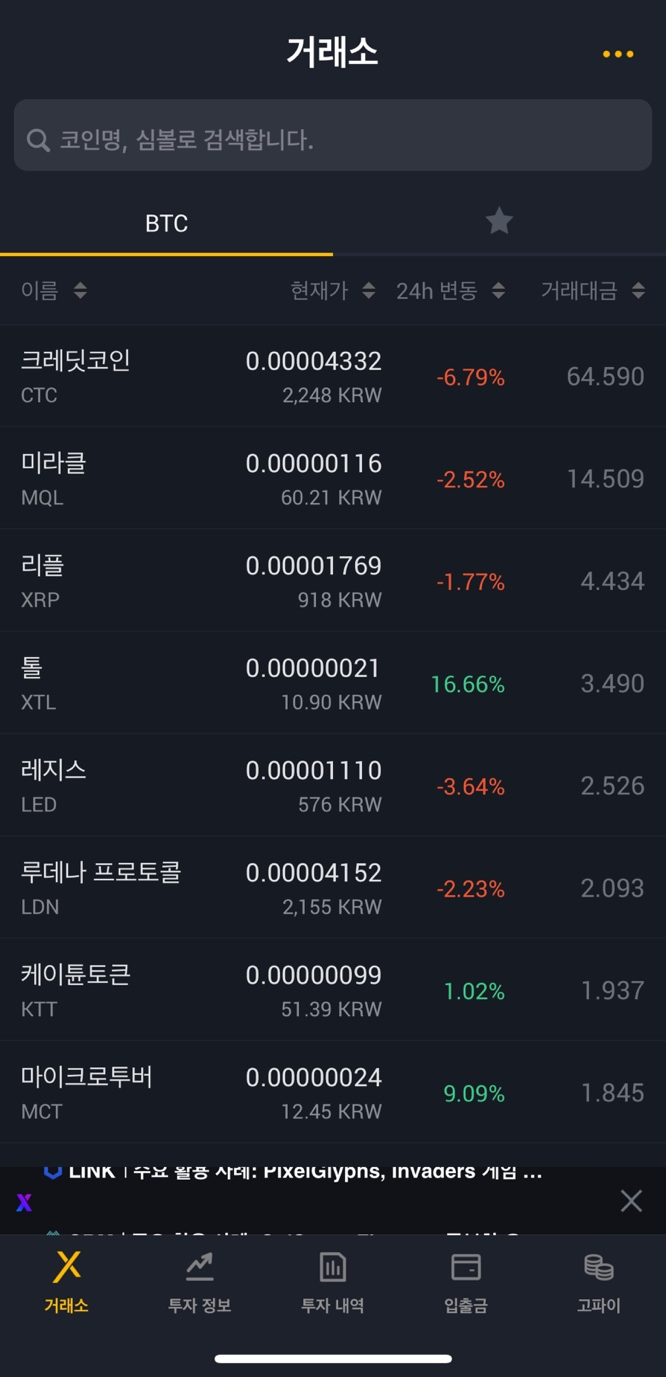 우선 어떤 가상화폐를 거래할 지 다시한번 살펴보며 거래를 다시 이어가야 겠습니다.